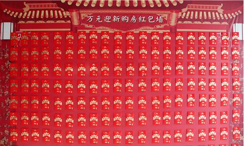 墻頂上吊下來金光燦燦的金蛋,充滿著喜慶;凡認籌客戶即可現(xiàn)場砸金蛋,領(lǐng)取家電大禮;同時可以抽取最高18888元的購房紅包(代金券)。