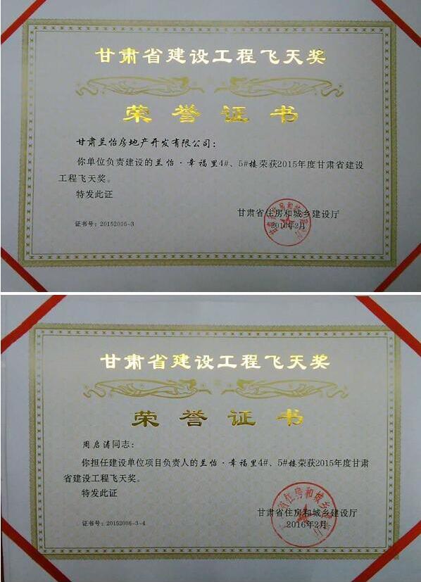2016年2月55日,中集幸福里榮獲2015年度甘肅省建設(shè)工程“飛天獎(jiǎng)”;