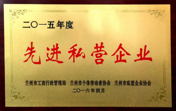 2016年4月,甘肅中集房地產(chǎn)開發(fā)有限公司榮獲“2015年度先進(jìn)私營(yíng)企業(yè)”;