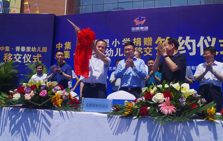 2017年6月22日下午14時,甘肅中集實業(yè)集團有限公司通過甘肅省慈善總會,向蘭州市安寧區(qū)人民政府捐贈價值1.02億元中集•幸福里小學暨中集•青春里配建幼兒園移交儀式在中集•幸福里小學操場隆重舉行。甘肅省原人大常委會副主任、甘肅省慈善總會會長朱志良,甘肅省原民政廳黨組書記、廳長、甘肅省慈善總會常務副會長梁國安,甘肅省教育廳副廳長趙 凱,蘭州市人大常委會副主任孫曉鋼,蘭州市人民政府副秘書長淡漢榮,安寧區(qū)區(qū)委書記王 方及安寧區(qū)區(qū)委副書記、區(qū)長雒澤民攜安寧區(qū)委、區(qū)人大、區(qū)政府、區(qū)政協(xié)四大班子領導,蘭州市教育局、蘭州市國土局、蘭州市規(guī)劃局、蘭州市房產(chǎn)局相關領導出席捐贈儀式,甘肅中集實業(yè)集團有限公司黨委書記、董事長周啟濤代表公司完成與安寧區(qū)人民政府捐贈及移交簽約。