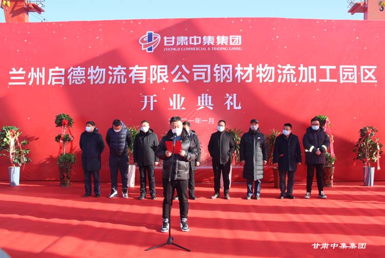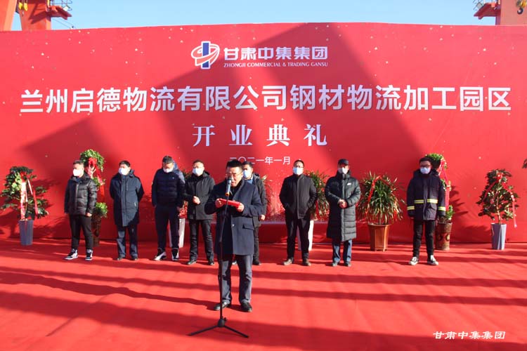 2021年1月12日上午10:18分,甘肅中集實業(yè)集團有限公司旗下蘭州啟德物流有限公司河口鋼材物流加工園區(qū)開業(yè)慶典在甘肅物產(chǎn)集團河口物流園隆重舉行。甘肅中集實業(yè)集團有限公司黨委書記、董事長周啟濤隆重宣布物流園開業(yè)。酒鋼集團、八一鋼鐵集團、內(nèi)蒙古包鋼集團、甘肅省物產(chǎn)集團河口物流園、甘肅省鋼材商會、物流園轄區(qū)及公司合作伙伴等100余名領(lǐng)導(dǎo)嘉賓參加開業(yè)慶典。