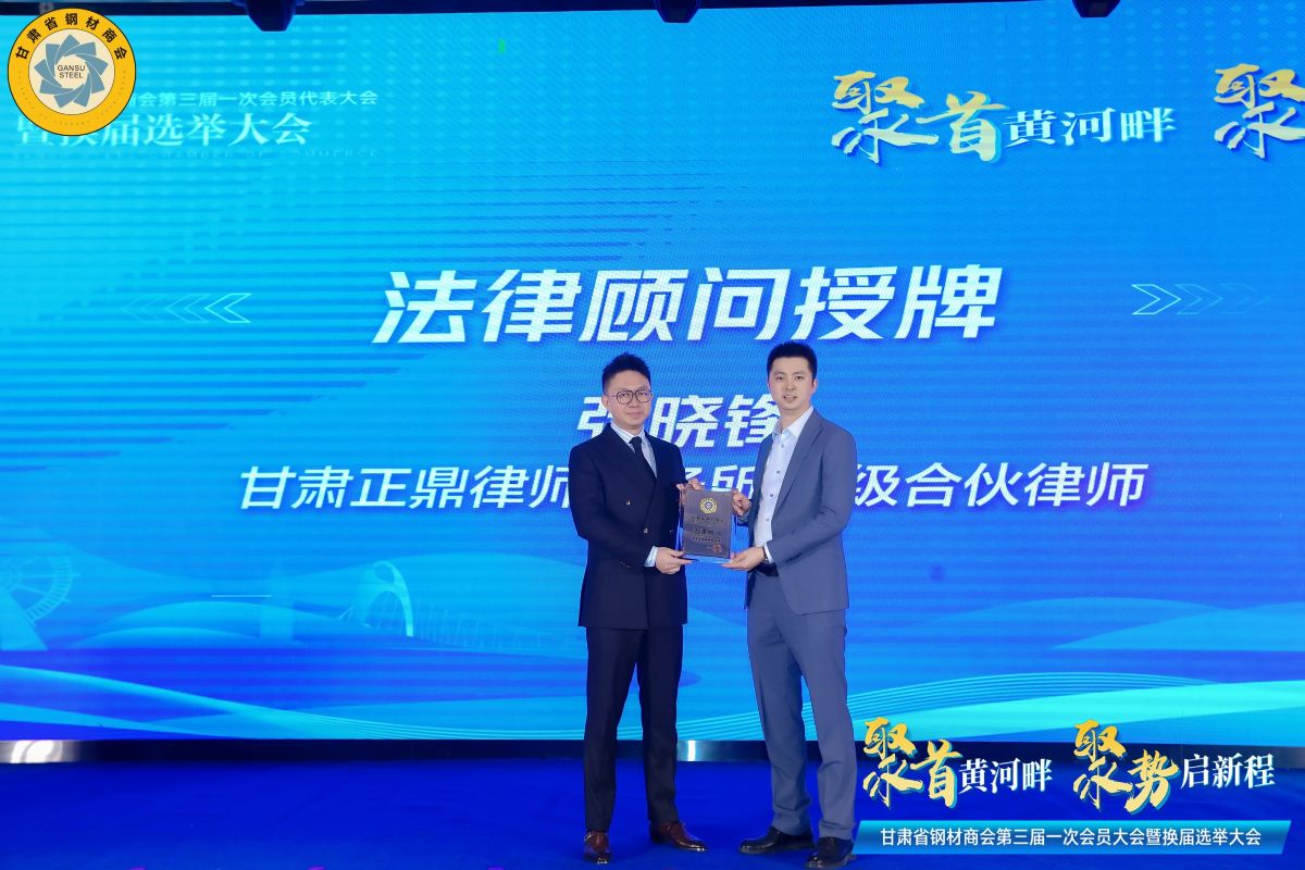 甘肅省鋼材商會會長周啟濤為法律顧問單位--甘肅正鼎律師事務所授牌